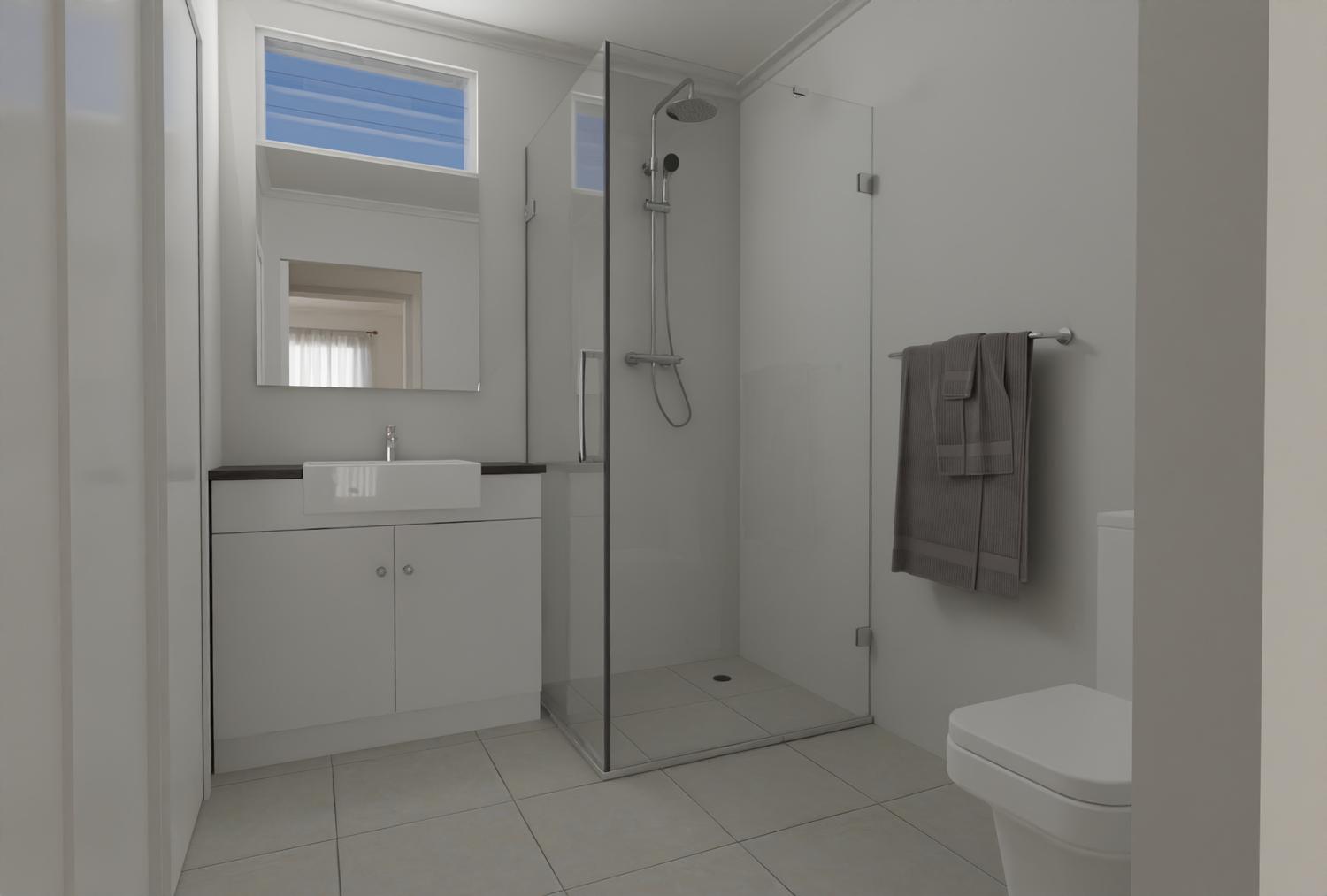 - Seamless easy to clean floors to wet areas.