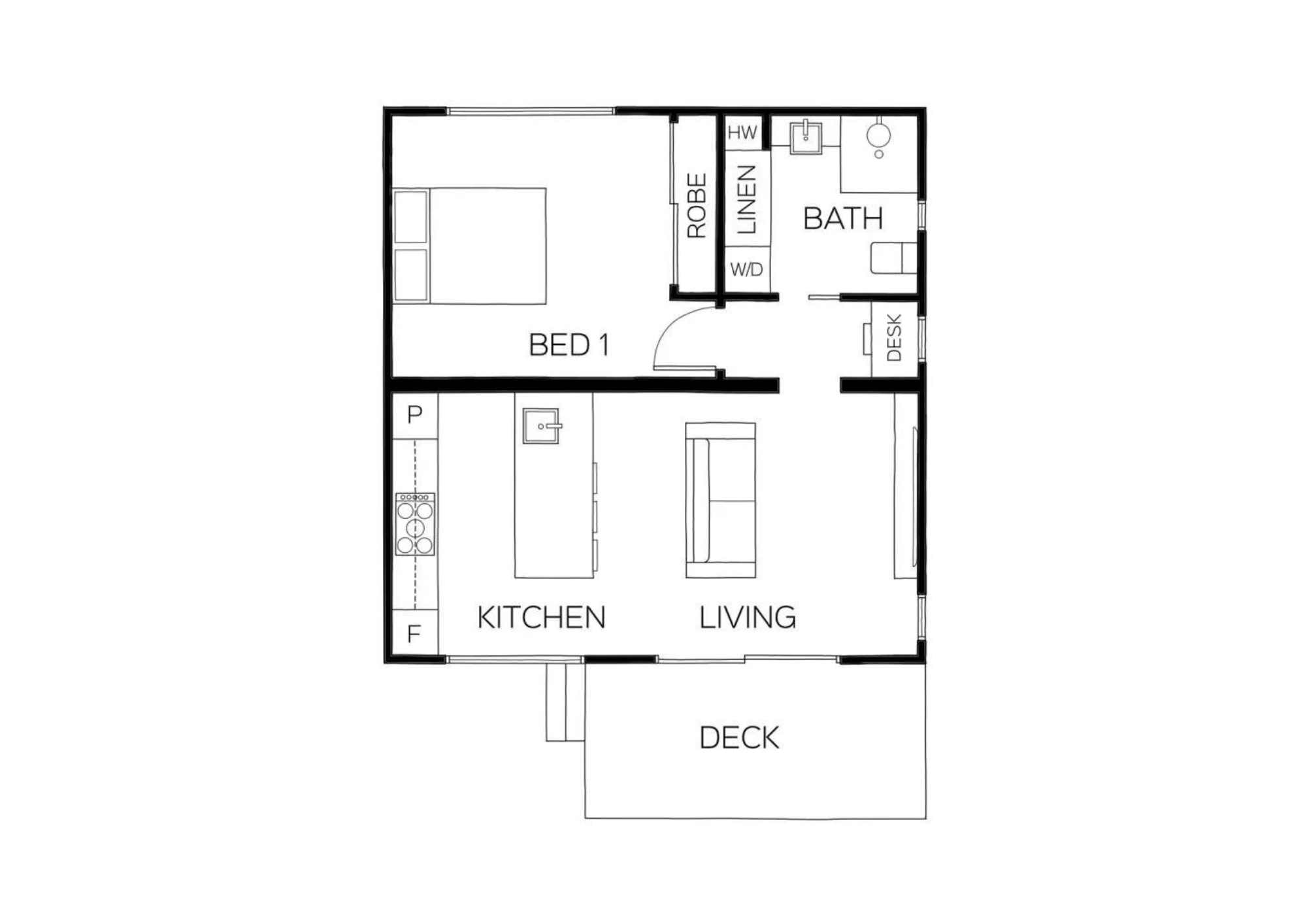 Standard MONCASA one bedroom granny flat features include: